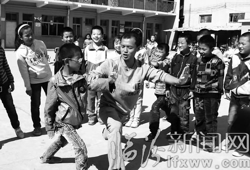 在永和縣城關第二小學的操場上,經(jīng)常可以看到一位年輕的體育老師教授學生們武術,待教習完畢,又組織學生們用自制的體育器材開展各種體育活動,學生們玩得不亦可乎,他也指導的興高采烈。這位老師叫做郭建偉,雖然只有27歲,但卻是這個學校里最受歡迎的老師之一。