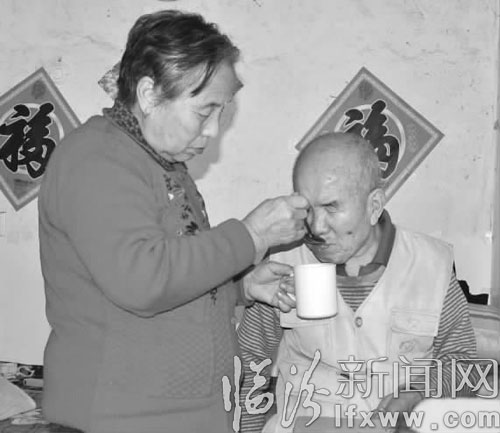手把手喂丈夫喝水、吃飯,從不嫌累。