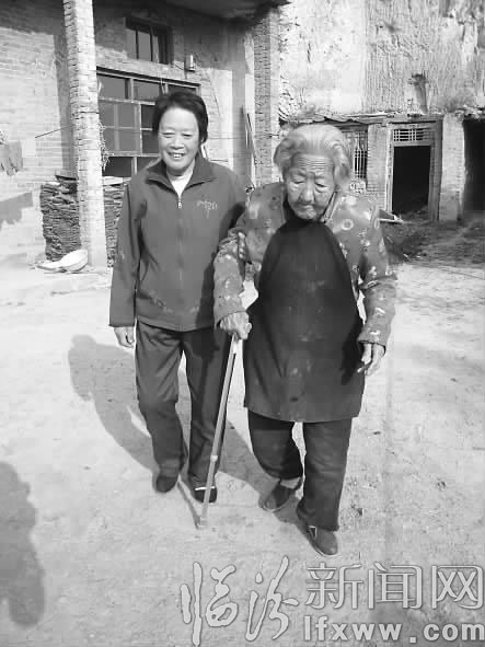 吳冬玲扶著婆婆在院子里走動。