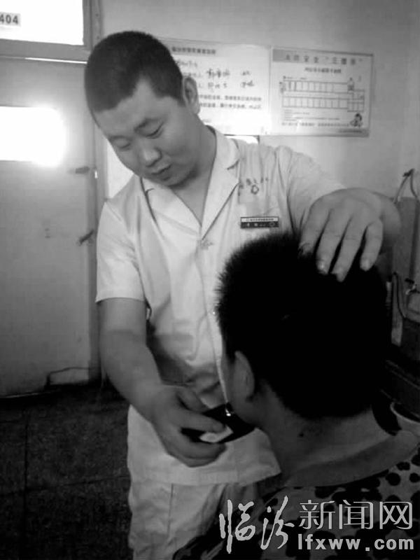李楊在精心為患者刮胡子。