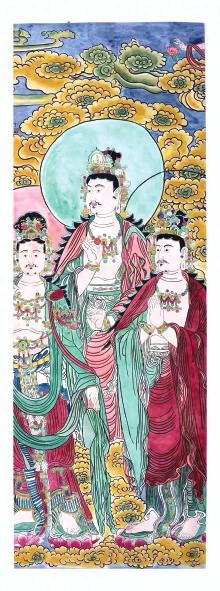 在臨汾的古代文明中,宗教文化以它獨特的地方和豐富的資源作為壁畫內容,不僅再現了中國古代不斷豐富和發展的壁畫藝術,而且為我們了解中國古代人民的宗教信仰、人文思想、生產生活等提供了圖像資料,具有文物考古價值。壁畫的臨摹是繼承和發揚民族藝術傳統的手段和方法,不能讓國之瑰寶失落于歷史長河。”4月14日,梅瑩臨摹創作的《龍王祈雨圖》《龍王降雨圖》《王宮尚寶圖》《元雜劇圖》《太宗出行巡行圖》《王宮尚食圖》《十二圓覺圖》《五十三尊畫佛局部》《孔子壁畫》《老子壁畫》《豎三世佛圖》《藥師佛會圖》等12鋪、46幅壁畫在洪洞展出,最令人矚目的莫過于流失的國寶《藥師佛會圖》重現”故鄉。