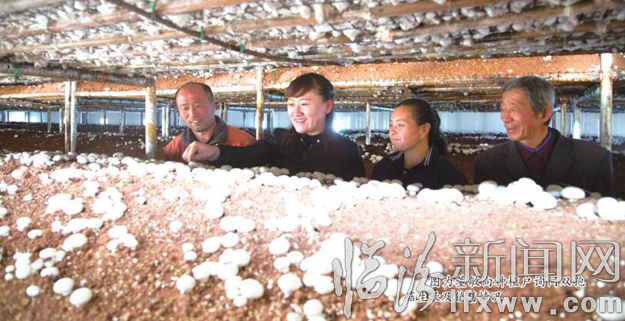 圖為董敏向種植戶詢問雙孢菇生長及銷售情況