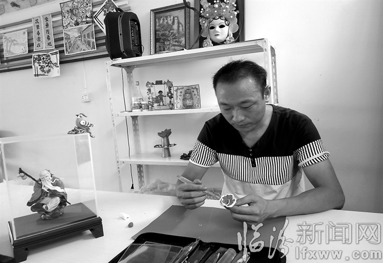 2008年的一天夜晚,許雷雷在網上瀏覽新聞時,不經意看到了一則關于面塑工藝的報道。水滸108好漢、三國人物、八仙、福祿壽等面塑娃娃栩栩如生、活靈活現印入了他的眼瞼。高中時學過一年美術、大專時學習電腦設計專業的他,瞬間變得異常興奮。由此,他對面塑這項傳統民間工藝產生了濃厚的興趣。