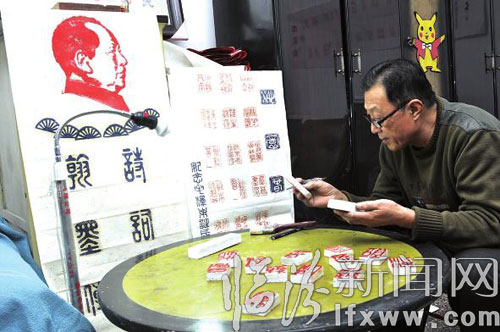 洪洞縣的退休干部胡志平有一手在印章上刻詩詞的手藝,而且他一直以來只刻毛主席的詩詞。胡志平說,馬上就是毛主席120周年誕辰紀念日了,希望通過雕刻毛主席詩詞的方式來紀念這位偉人。