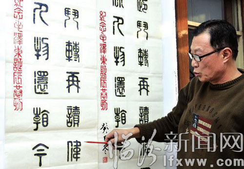 “雕刻詩詞太費石料,刻的小了看不見,刻的大了一塊石料上刻不了幾個字,我沒有辦法,最后想到了用石膏來代替。”胡志平說,一幅《沁園春·雪》就用掉了幾十塊石料,而現在市面上一塊好一點的石料大概要80多元,這樣的投資是很龐大的,他從沒有想過靠雕刻來掙錢,也就犯不上投資,于是就想到了石膏。