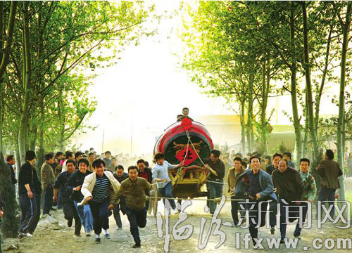 “‘跑鼓車’自古流傳下來的一個參賽要求,就是比賽過程中死傷自負,該項活動的競爭性和激烈性可想而知。當年由于缺少遠距離拍攝器材,為了拍到比賽的精彩畫面,我只能貼近快速奔跑的鼓車,常常是鼓車一沖過來,就快速按快門,然后趕緊跳到旁邊去,驚險和刺激感一點兒不次于參賽選手。”翻出一張張曾經的照片,看著驚心動魄的比賽場面,張向東恍如昨日。