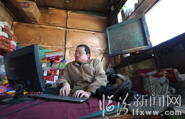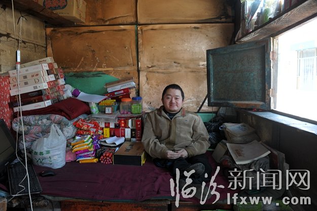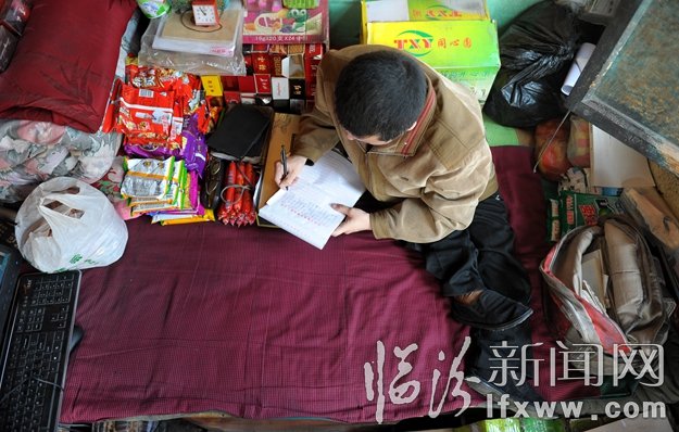在堯都區西王村中央有一間6平米的小鐵皮房子,里面的主人就是鄧學義,身高1米左右,從小與輪椅為伴,出生三個月便被確診為“先天成骨不全”,因骨頭即使輕微碰撞,就會造成骨折,被俗稱“玻璃人”。因而在學校只上了一個星期課便無奈輟學,但他并未放棄學習。他讓家人買來了全套課本在家自學,還從廢品回收商那里買回了一摞摞的舊書閱讀。“1996年萌生了創作的想法,于是陸陸續續地寫一些東西,”鄧學義說,最初的愿望是寫童話,因為童話陪他度過了自疑、彷徨的少年時代。鄧學義寫得并不快,一篇不到萬字的短篇小說有時候要耗時三四個月。“第一次發表作品是在2010年,在《山西文學》上,叫《謊》。”鄧學義說。這篇短篇小說也讓鄧學義獲得了2010-2012年“趙樹理文學獎”短篇小說獎。至今,鄧學義已發表20多萬字作品,然而他的生計仍然要靠開在村口的小賣部。“村里人少,一個月能掙1000塊錢,至少能養活自己。”鄧學義表示,如今純文學的作家很少單純靠創作為生,市場更認同快餐式的小說。“但是我覺得,純文學的作品,作者需要耐心,讀者需要靜心,作品的價值不是僅靠市場來體現的。” 今年32歲的鄧學義仍然沒有忘記最初的理想,他繼續堅守著投稿與退稿這份執著,在生活中發現創作源泉,在平淡中努力著,向自己的目標一步步邁進。(記者 趙俊堂 閆銳鵬 攝影報道)