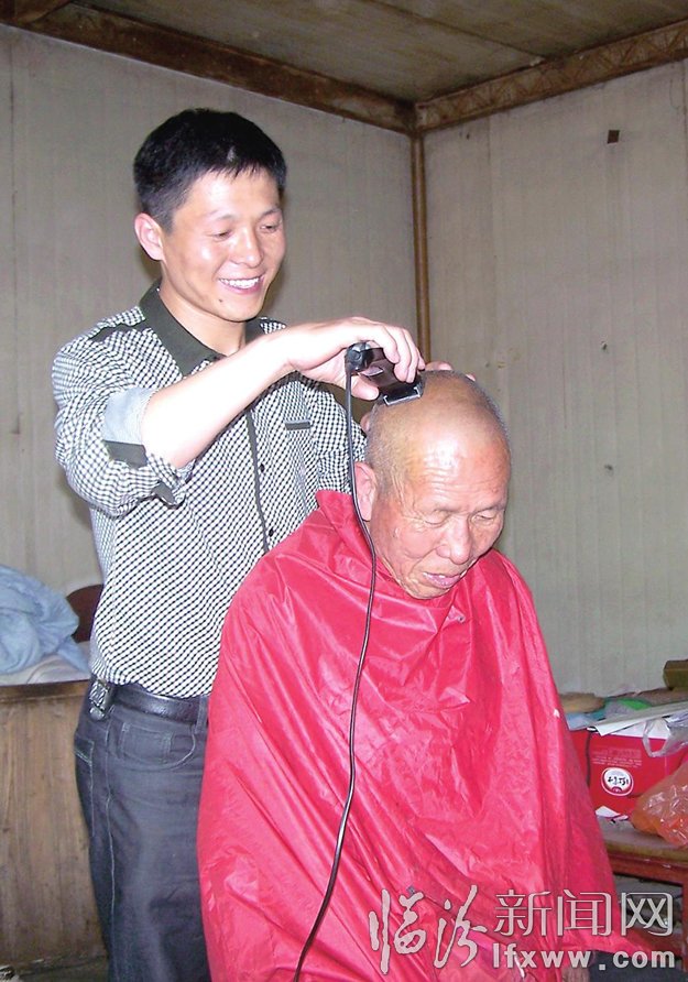 用暢大爺老伴的話說:“老五這孩子,熱心、耐心、還有愛心。就連自己的孩子也伺候不了的老伴,和老五卻很投緣。每次推好頭后面貌都煥然一新。只要想理發(fā),老五從不推辭。這一干就是7年多,無論刮風(fēng)下雨、還是寒冬酷暑,從不間斷。”