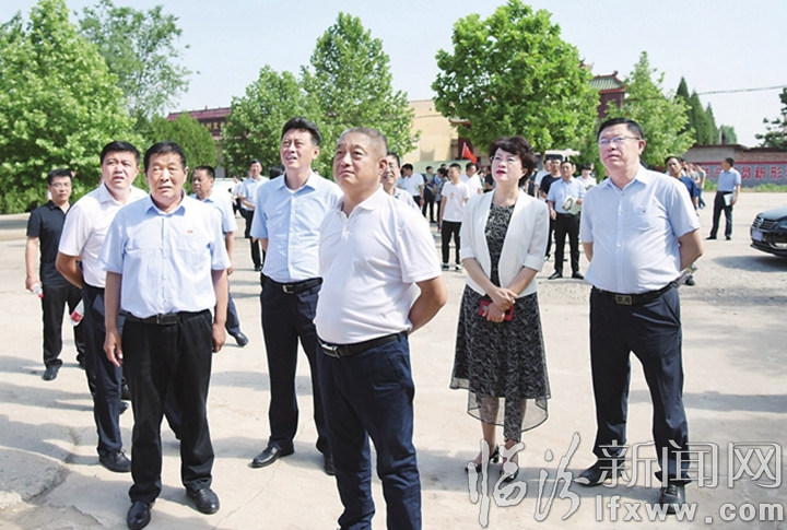市委常委、堯都區委書記陳綱,區委副書記、區長吳勇在堯都區大陽鎮坡子村現場觀摩環境衛生綜合整治情況。 郝東博 攝