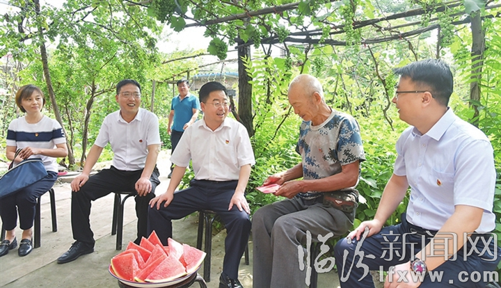 7月1日,霍州市委書記李強(qiáng)走訪慰問優(yōu)秀共產(chǎn)黨員張德順(右二)。