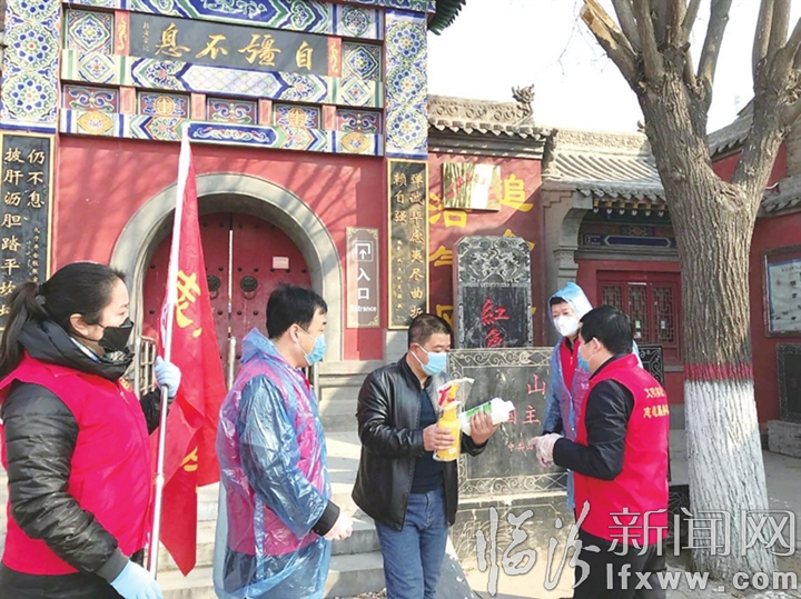 志愿者在洪洞縣常二社區開展疫情防控志愿服務
