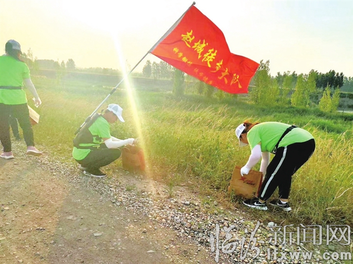 洪洞縣趙城鎮徒步大隊志愿者在汾河岸邊開展保護環境,愛護母親河行動