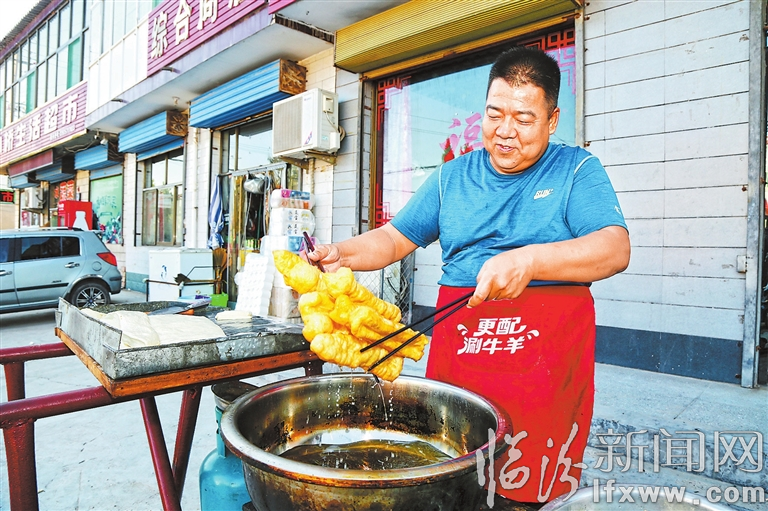 店里不忙的時候,呂軍會去廚師學校教大家炸油條。一天賣掉將近35公斤面,他炸油條的訣竅可不單純靠廚藝,“好食材才能做出好味道,你說是不是這個理兒?”呂軍告訴記者,他的油條是用雞蛋和油和面的,面粉也不是普通面粉,而是五星高筋粉,“這樣做成本是高了點,但炸出來的油條口感好,大家都喜歡。”