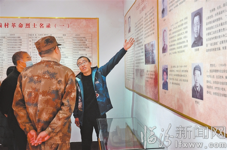 11月14日,東原村村史黨史教育館內(nèi),講解員正在為參觀者進(jìn)行館內(nèi)展品介紹。 記者 王德政 攝