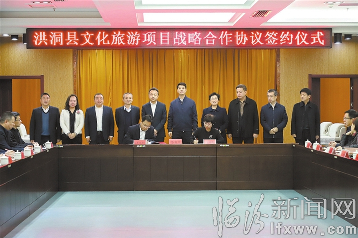 12月22日,洪洞縣政府與山西文旅山旅集團簽訂戰略合作協議。市委副書記、洪洞縣委書記黃巍,山西文旅集團副總經理,山西文旅山旅集團黨委書記、董事長郭凱出席簽約儀式。洪洞縣委副書記、代縣長李俊平與山旅集團黨委副書記、副董事長、總經理李劍平現場簽約。