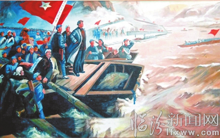 2月20日,夜色中的黃河低吼著,即將見證中華歷史上重要的時刻。晚8時,沖鋒號吹響紅一軍團突擊戰士躍上兩只小船從陜西綏德縣溝口村向對岸沖去。突擊戰士過河后,迅速搶占碉堡,擴大突破口,控制灘頭。紅十五軍團因抬運船只途中遇到意外困難,9時從清澗縣河口強渡黃河。拂曉時分,黃河游擊師一個連也配合主力渡河過來,攻入永和境內,一排在永和關山上壓住閻軍一個營,二排壓住咀頭之敵,三排攻克了馬家灘碉堡,從而控制了南面敵人,保證紅軍順利渡河。紅十五軍團迎著朝霞,沿20里長的河面在石樓縣辛關、永和咀頭浩浩蕩蕩渡過黃河。這樣北從三交鎮,南至馬頭關的二百余里河防全部掌控在紅軍手中。2月21日毛澤東率領總部人員趕到十五軍團渡河指揮部駐地,22日清晨率總部人員從西辛關東渡,到達石樓縣義牒鎮。