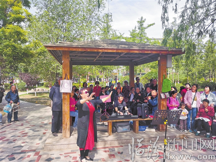 5月23日上午,在汾西縣鳳凰公園,喜洋洋合唱團成員精心排練《沒有共產黨就沒有新中國》《團結就是力量》等經典革命歌曲,為即將舉行的2021年山西省群眾文化惠民工程——文化三晉樂萬家專項文藝演出做準備。