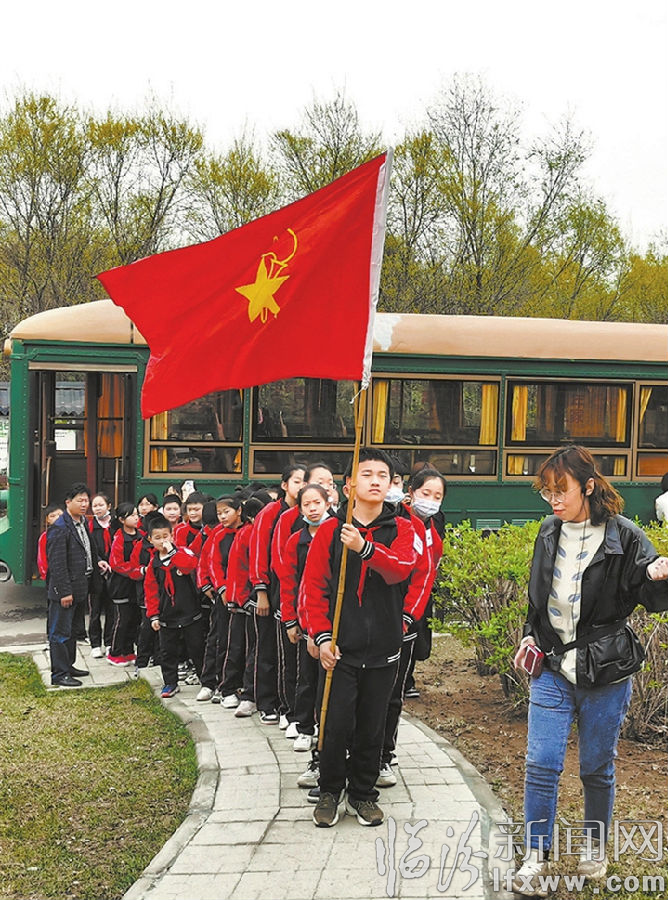▲洪洞縣青年志愿服務隊組織古槐小學少先隊員在汾河濕地公園開展“文明先鋒行”主題活動。