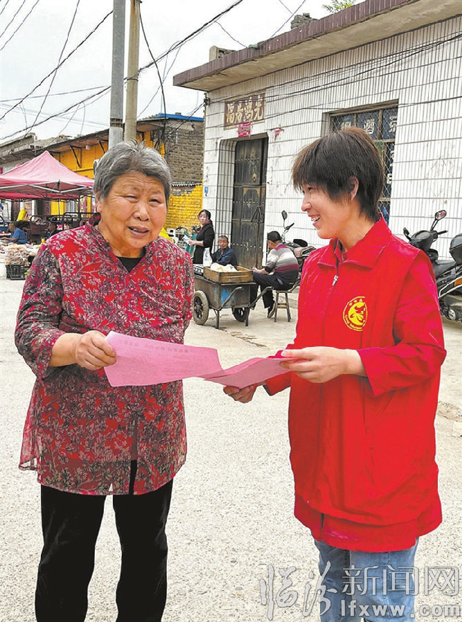 ▲蘇堡鎮宣傳委員杜素絨在西尹壁集貿市場宣傳《信訪條例》。