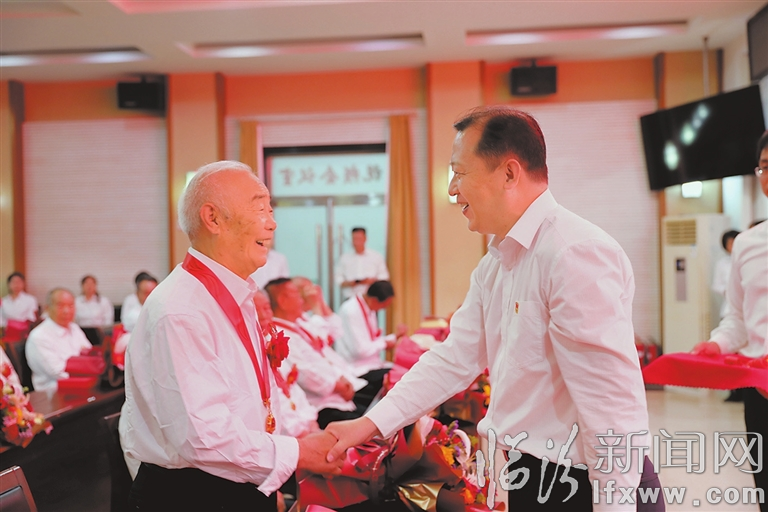 王淵出席并為老黨員代表頒發(fā)紀(jì)念章