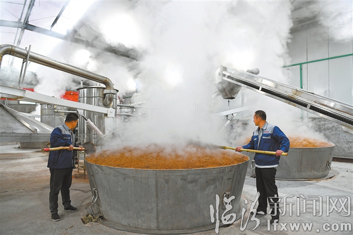 昕宗酒業(yè)的釀酒師傅正在對(duì)潤(rùn)糝后的高粱入鍋蒸煮糊化
