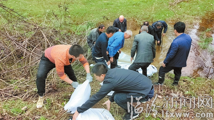 褚村黨總支接到情況反映,立刻派遣巡河隊員第一時間趕到險情點,與水務局的技術人員一起協作,經過四五個小時的奮戰,終于把滲漏點全部堵上。