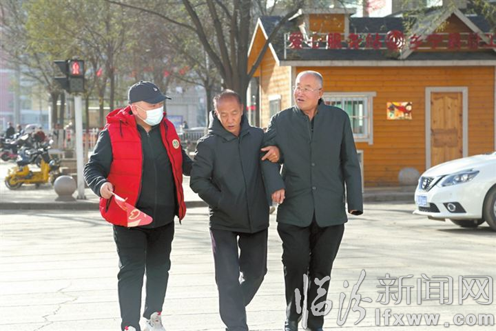 鄉(xiāng)寧縣開展文明交通志愿服務(wù),圖為志愿者幫助老人過(guò)馬路。