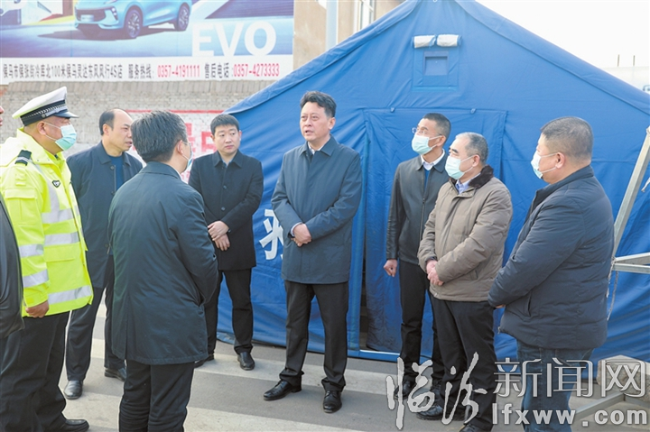 吳勇在侯馬市重型柴油貨車管控執勤點調研