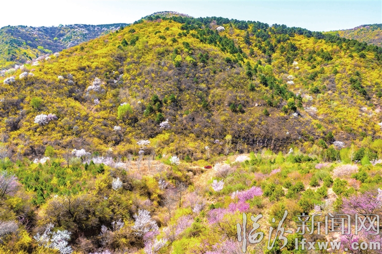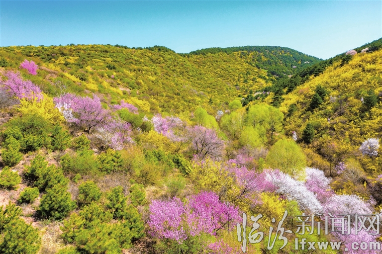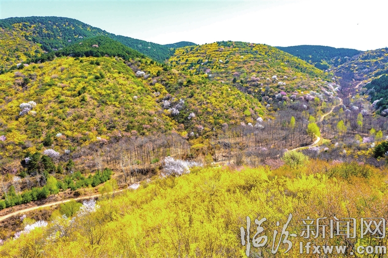 臨汾新聞網訊 草木茂盛,花香飄溢,在翼城縣隆化鎮紅沙腰自然生態風景旅游區內,漫山遍野的連翹花競相綻放,密密匝匝,宛若黃色的波浪,把山巒群峰裝扮得五彩繽紛、分外絢麗。走進紅沙腰,滿山新綠鑲嵌著金色的連翹花,層層疊疊,一片接著一片,以旺盛的生機點綴著山野秀峰,蔚為壯觀,堪稱一道絕美的風景線。(郭振強 攝)