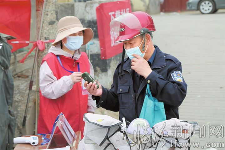 自4月初以來,臨汾經濟開發區黨工委、管委會100余名志愿者下沉一線,在各社區防控卡點,協助社區工作人員開展疫情防控工作。圖為志愿者在下樊社區防控卡點引導居民掃碼登記。