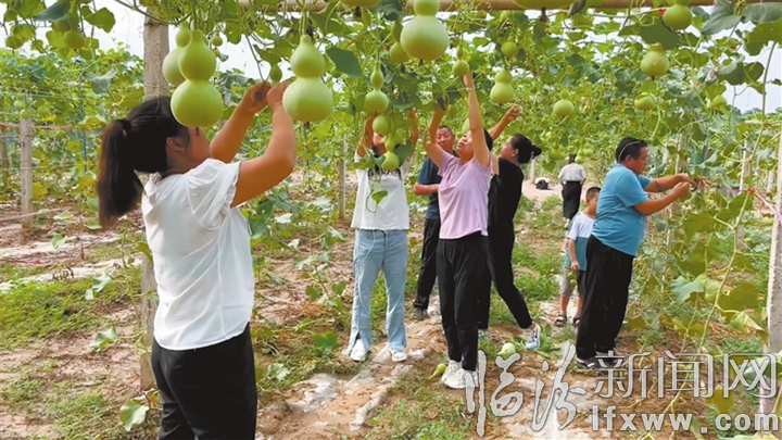 走進搭滿藤架的朝陽村葫蘆園,放眼望去,大大小小的葫蘆掛在枝頭,長勢喜人。朝陽村黨支部書記、村委主任王長發正仔細查看葫蘆長勢。據他介紹,在村黨支部的引領下,朝陽村今年投資20余萬元,引進了葫蘆種植項目,并與山東加工經銷商簽訂了種植銷售一體合同,成熟后的葫蘆有了穩定的銷路,帶動當地村民在家門口就業增收。