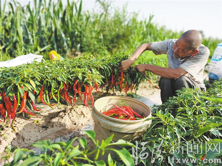 “今年的辣椒品質好,也趕上了市場好行情,50畝辣椒預計能收入15萬元。”在浮山縣北王鎮杜村王靜飛的辣椒地里,二十幾個農戶正提著籃子采摘辣椒,地壟上一筐筐采摘好的辣椒映紅了農戶們的笑臉。
