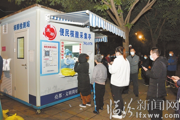 連續降雨之后,氣溫驟降,秋風瑟瑟。深夜大部分居民穿上棉衣,積極配合工作人員,參與信息登記、核酸采樣等一系列流程。工作人員與醫護人員分工協作、密切配合,引導、掃碼、采樣,各項工作井然有序。大家不僅毫無怨言,還做到服務熱情不低,工作效率不減,不斷在平凡的崗位上傳遞溫暖力量,精準高效推進核酸采樣工作。