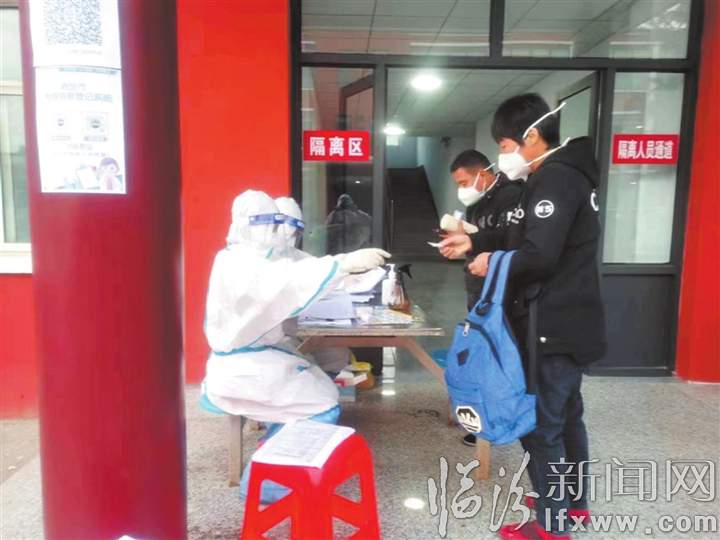 醫療保障組的醫務人員每天披星戴月,確保所有隔離人員及工作人員核酸采集按時按量完成。同時,還要對隔離人員進行健康監測、體溫登記,對有特殊癥狀者做到及時問診和處置。