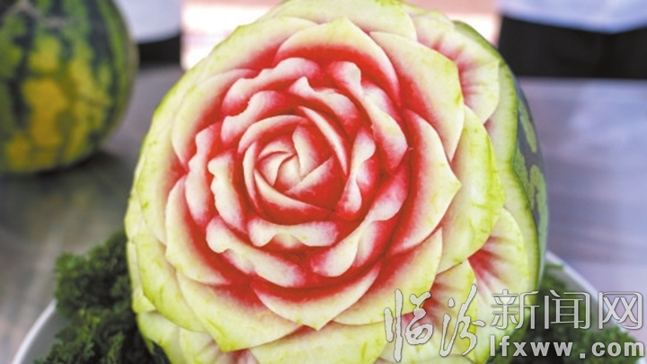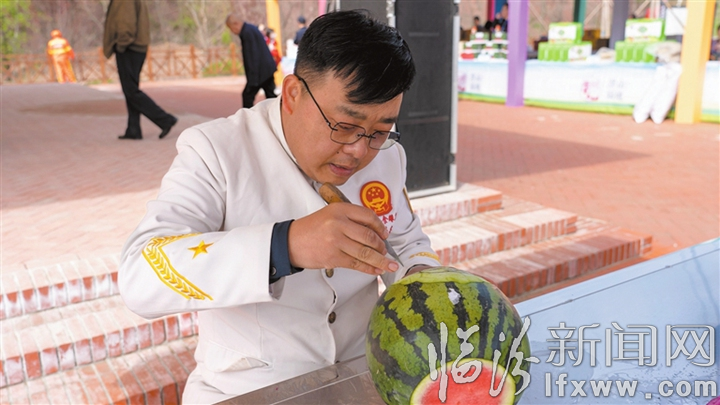 這邊演出現場掌聲不斷,那邊美食街上吆喝聲此起彼伏。榮獲中國工藝美術百花獎金獎的浮山手藝人衛興安此刻正全神貫注地在西瓜上雕花,只見手起刀落間,一朵栩栩如生的“玫瑰”躍然西瓜之上,圍觀游客也鼓掌叫好。“自己的手藝能為家鄉活動添彩助威,也是我作為浮山兒女的一份驕傲。”已經有20多年雕花、面塑經驗的衛興安,此次專門為活動做了“八仙過海面塑”,“希望更多人走進浮山,感受浮山文化,愛上浮山。”