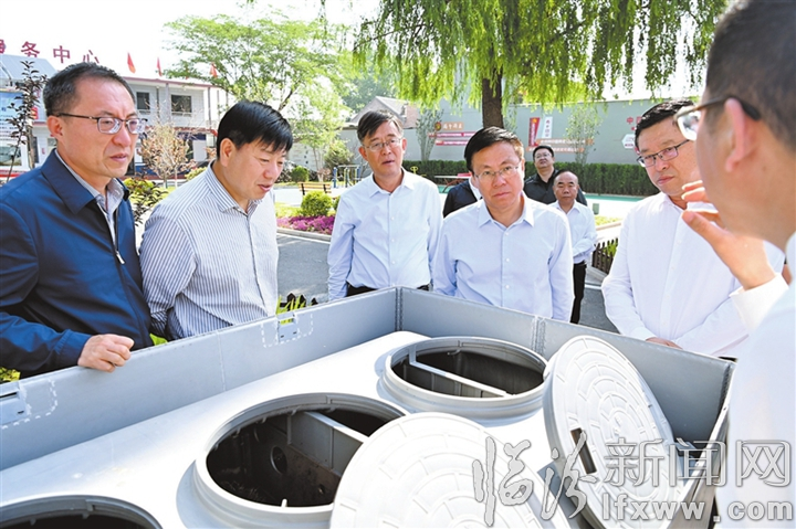 崔紹民、任俊杰在洪洞縣甘亭鎮(zhèn)團(tuán)結(jié)村調(diào)研集體經(jīng)濟(jì)共建項(xiàng)目“廁所革命+污水處理”示范工程建設(shè)情況。 郝東博 攝