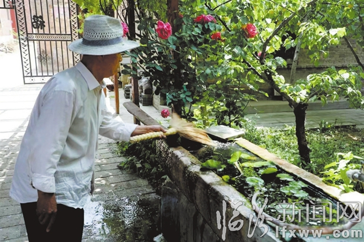 而另一戶村民賈晉管、許心愛夫婦家的宅院,令筆者感到十分驚訝。古色古香的大門,雕梁畫棟的屋檐,門上獅首銅環(huán),門內(nèi)鹿雕影壁,庭院深深,綠蔭掩映;石槽里睡蓮新翠,蜂箱里蜜蜂穿梭;木亭周圍綠竹婆娑,菜園里滿眼時(shí)蔬;高大的皂角樹冠宛若巨傘,灑落一地清涼,溫順的鴿子像“紳士”一樣,在屋頂上慢悠悠地踱步。