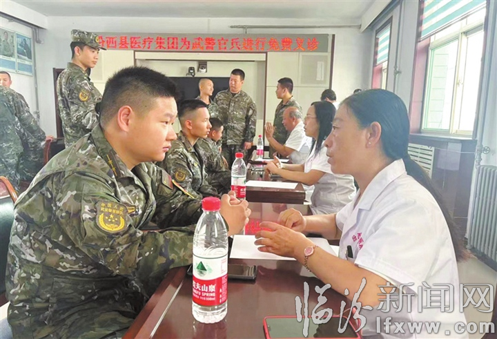 日前,汾西縣人民醫院、縣中醫院組織醫護人員走進縣武警中隊開展健康義診活動,針對武警戰士容易出現肌肉拉傷、關節損傷等情況進行了健康指導。