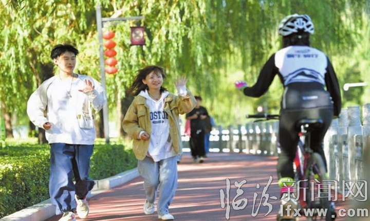 河岸上,秋花簇簇,淡香縷縷,三三兩兩晨練的人們動作輕盈……