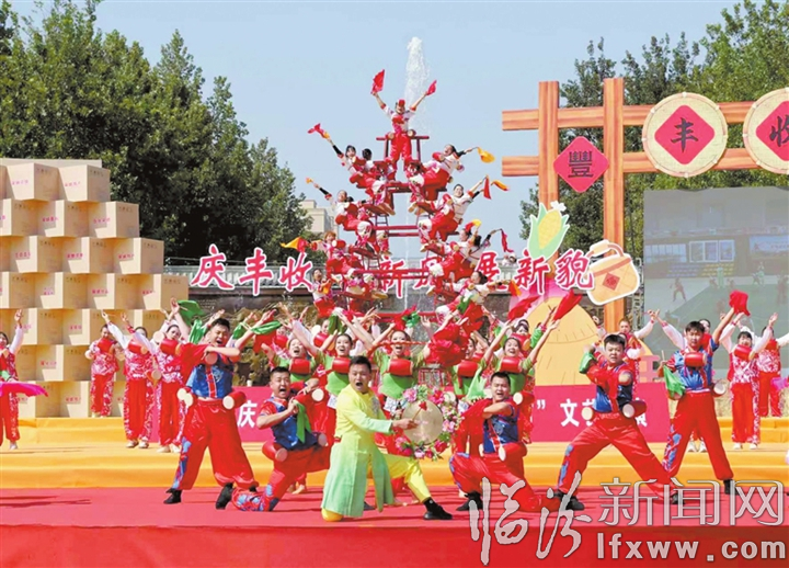 當日上午9時30分,在氣勢磅礴的威風鑼鼓《鼓舞歡顏》激昂的鼓點中,慶祝活動拉開帷幕。隨后,歌舞《豐收進行曲》以歡快的節奏舞出農民的自豪和喜悅;情景劇《歷史照見未來》通過新舊對比,形象展現了翼城農業從“面朝黃土背朝天”的傳統耕作,向“科技賦能、智慧管理”的現代模式轉型的輝煌歷程。