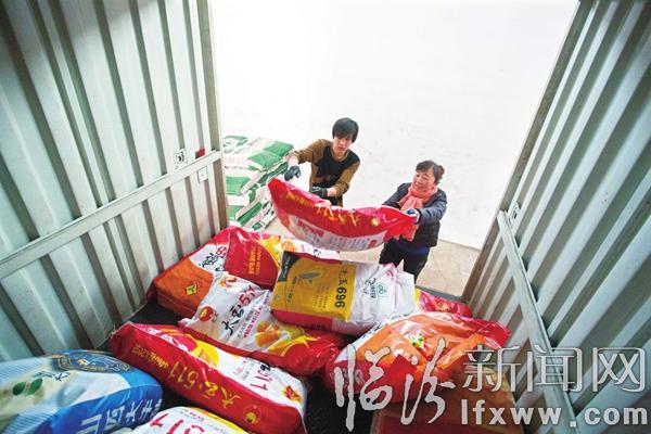 臨汾新聞網訊 眼下正是春播時期,購買種子及播種工具成為農民心頭的一件大事。臨汾經濟開發區堯鄉種業實行上門服務,將種子和播種工具運送至蒲縣、鄉寧等地的商家及農戶手中,為廣大農戶提供了便利。圖為工作人員正在裝車運送。 記者 鄭遠飛 攝