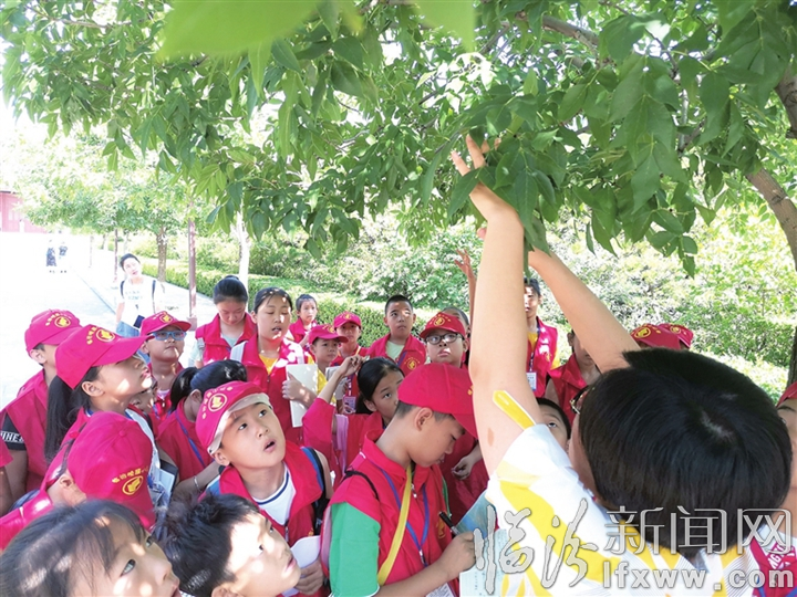 工作人員向小記者們講解城市綠植生長周期。 本報記者 趙俊 攝
