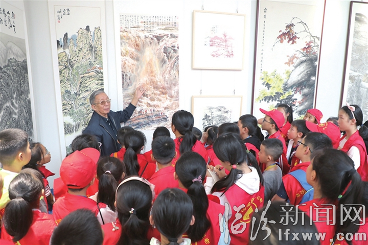 活動現場,山西省中國畫學會臨汾分會會長呂十鎖邀請著名學者、山西師大文學院副教授馮彥山給孩子講學習傳統文化的重要性,在場畫家宋希祥、劉松江、仇錦、司京山、呂一力、靳朝輝等為小記者解說展覽作品,并從中國畫的工具材料、題材分類、技法等方面進行了淺顯易懂的講解,帶領小記者了解創作背后的故事。