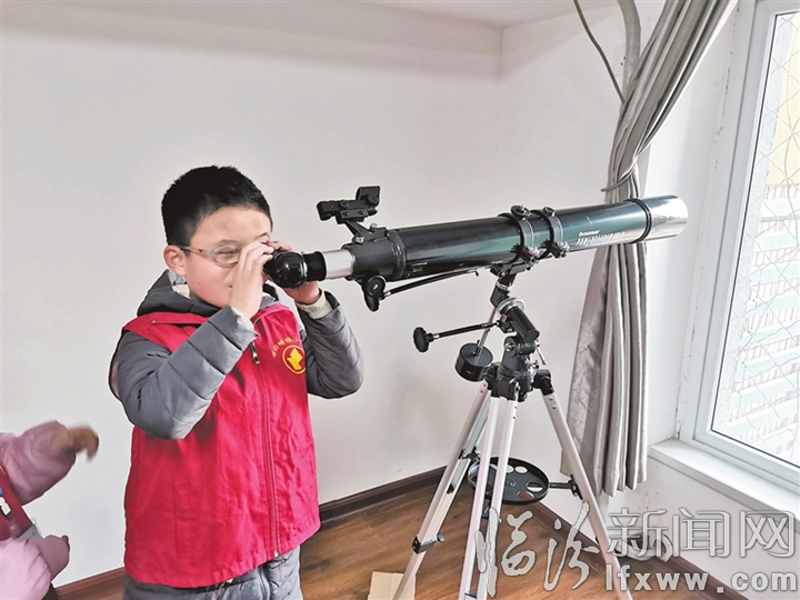 提起望遠鏡,小記者們都不陌生,但高倍數(shù)的天文望遠鏡,小記者們可不一定見識過。“這個體型龐大的望遠鏡是專門觀測天體、捕捉天體信息的主要工具,它是用經線和緯線來記錄所觀測的地點,記錄所看到的內容,比普通的望遠鏡看得更遠、更清楚。”老師邊教小記者們操作,邊講解望遠鏡的工作原理。一旁的小記者們早已迫不及待想要“一探究竟”,紛紛動手體驗了操控天文望遠鏡的樂趣。