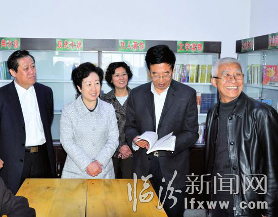 圖為省新聞出版局局長林玉平在市委常委、宣傳部部長黃翠蓮等領導的陪同下,考察我市農家書屋建設情況。