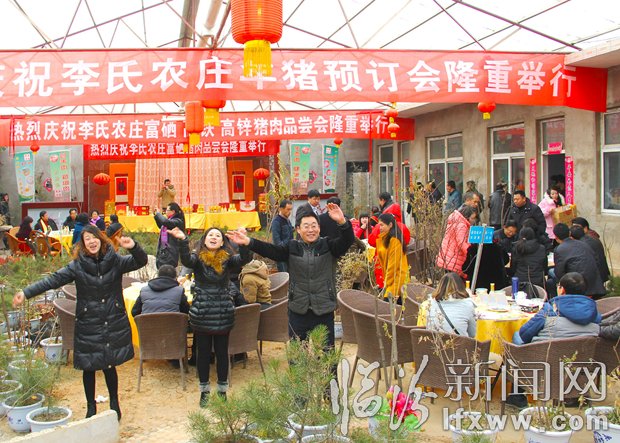 12月11日上午,近百名商家、市民蜂擁前往堯都區枕頭鄉刁家梁李氏農莊,親身體驗舌尖上的黑豬肉。