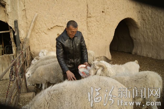 圖為大寧縣太古鄉嶺頭村民常守忠正在給小尾寒羊喂食。