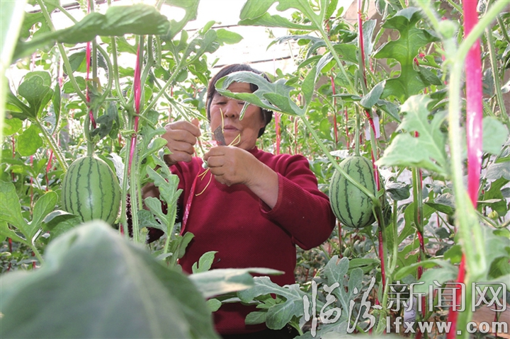 臨汾新聞網訊 清明假期,廣奇農業生態園內游人如織,草莓、圣女果、西紅柿等瓜果蔬菜成為百姓采摘熱門。據了解,新冠肺炎疫情期間,廣奇農業生態園全部農產品降價銷售,部分還捐贈給一線抗疫人員,積極履行社會責任,樹立了良好的企業形象。圖為園區工作人員管護即將上市的大棚西瓜。