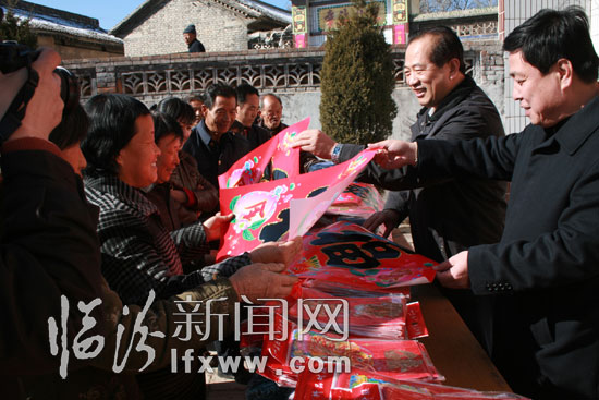 36歲的村民曹聚珍領到慰問品后激動地對記者說,“市政府機關事務管理局扶貧工作隊連續三年都給我們送衣物和面粉等年貨,我們十分感激。今天他們又給我們送來了160余袋面粉、200余件衣服,200余幅對聯和年畫,大伙都高興地來領取?!笔姓畽C關事務管理局局長任和暢每年都為70歲以上的老人送去300元的慰問金。