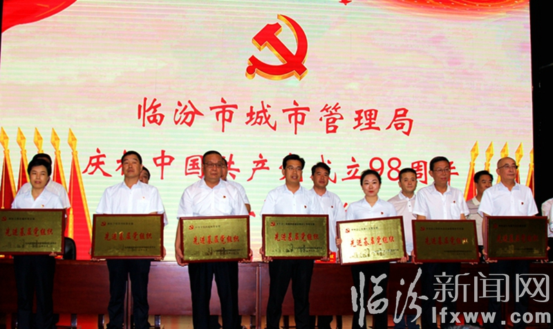 會議在莊重的國歌中拉開序幕,宣讀了《中共臨汾市城市管理局機關委員會關于“七 一”表彰先進基層黨組織和優秀個人的決定》,對在工作中取得優異成績的紅旗基層黨組 織10個、先進基層黨組織10個,“改革創新、奮發有為”十佳標兵10名、“城市環境大提 質”行動優秀紅旗手20名,優秀共產黨員90名、優秀黨務工作者10名進行了表彰,并為獲 得優秀黨組織和個人頒發了榮譽證書。
